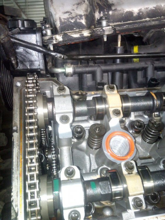 2. Всем привет. В прошлой части собрал низ мотора. Осталось собрать верх. Но перед сборкой надо выковырять пружинки из старых резьб ГБЦ, рассверлить отверстия и нарезать новую резьбу под нормальные футорки. Извлекались пружинки не совсем хорошо. Сложность была в том что в каждом отверстии под болт ГБЦ из было по 3 штуки, а болтов 20. Естественно ни о какой соосности резьбы речи быть не могло, так как их просто загоняли одну за другой, а там они как встали так и встали. Пружинки выкрутил, пришлось изготавливать небольшой специнструмент что бы процесс шёл быстрее. И вот 4 часа мучений и они извлечены. Дальше берём дрель, желательно помощнее ( у меня на киловатт) зенкер, направляющую оправку, для зенкера зажимаем на болты и сверлим. Кстати направляющая оправка под одно сверление, что бы разсверлить следующее отверстие необходимо оправку перекрутить и выставить, в дальнейшем буду изготавливать оправку на весь ряд цилиндров по типу фалшьголовки. В общем когда все 20 отверстий рассверлено приступаем к нарезке резьб. Использовал два метчика, один для захода другой для финишной нарезки. Ну а дальше просто закручиваем футорки и собираем дальше как обычно. Накидывает головы, обтягиваем в 4 захода ( 30 ньютонов + 3 раза по 60 градусов), засовываем гидрокомпенсаторы ( я их всегда подписываю какой от куда ), ставим распредвалы, накидывает цепи с натяжителями. Так же не забываем всё продувать смазывать итд. Внутри должно быть чисто). Всем удачи на дорогах…