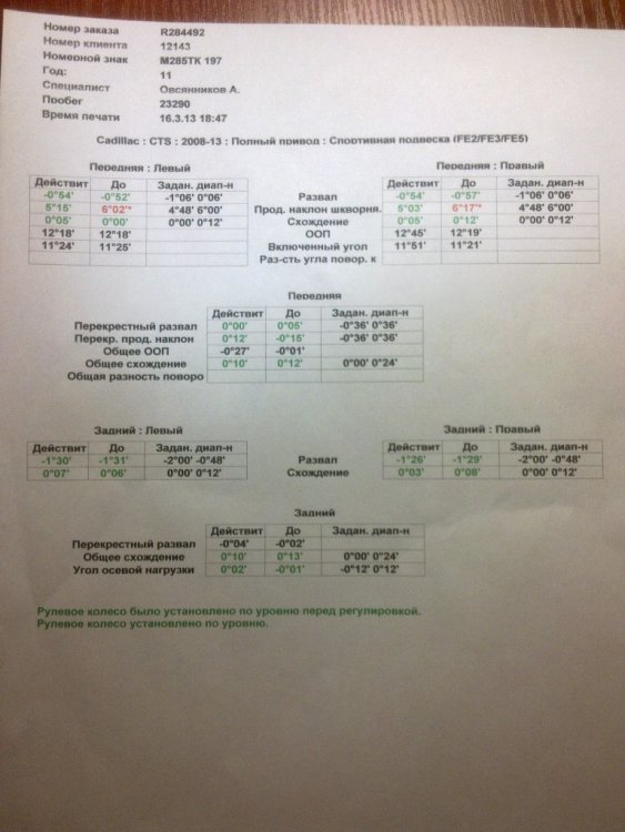 Я задолбил дженсер и они мне сделали развал-схождение по страховке! Не знаю как у AWD, а у RWD всё там регулируется и развал, и схождение и продольный наклон! Вот результаты: -