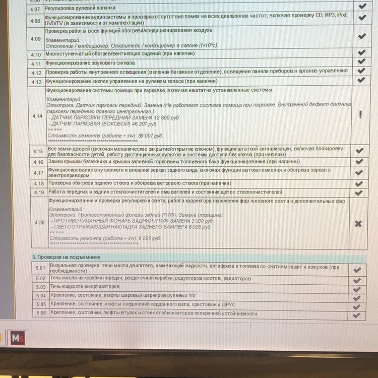 @qxyz Спасибо. Общался с продавцами на Авито, они объяснили, что передние/задние парктроники обычные, а вот самые крайние и боковые предназначены для автопарковки и они уже стоят совсем других денег, типа от 20к. У меня в дефектовке вот, что написноа, на картинке. Вот я и думаю, может это имели в виду они самые крайние, дорогие, поэтому цена такая? Но они мне и по телефону сказали вчера 47к, хотя я сказала передний правый центральный, не крайний. Сколько ж тогда у них крайний стоил бы. Ехать на дефектовку опять что ли, чтобы не выкинуть зря 4500 плюс 3500, если окажется не тот. У меня же 6 парктрооников впереди, правильно? Правый центральный - это вряд ли тот, что для автопарковки? В описании дефекта - правый центральный. А ниже - боковой. Странно. Может действительно это тот, что для парковки.