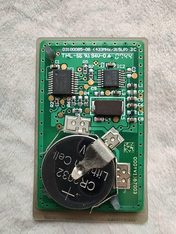 Посмотрел в бардачке, на моей табличке чего только не написано, но частоты увы нет. В общем разобрал родной брелок, увидел на плате 433MHz