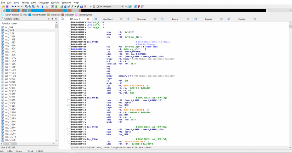 Немного комментариев по процессу, как это (в теории) будет происходить. Среда IDA Pro - дизассемблер, умеет понимать команды MPC5XX, а именно этот процессор у нас установлен. На картинке видно найденные процедуры. Надо понять что они делают. Для этого есть документ funktionsrahmen/function для ЭБУ. Ищем сигнатуру функции, даем ей определение из документа, обзываем, грубо говоря, соответствующим термином. Далее ищем соответствующую карту/значение в памяти, которая используется нужной подпрограммой. Читаем описание в документе. Даем ей определение в WinOls: выставляем адреса, оси, коэффициенты. В настоящий момент funktionsrahmen мне доступен на ЭБУ ME9.7 от мерседеса, но, я думаю, для начала пойдет. К тому же гугл говорит что поздние ME7.X мало отличаются от ME9.X. По ME7.X весь путь уже пройден. Основной принцип как в методе дедукции от Шерлока Холмса: от частного к общему. Сначала определяется чем занимаются подпрограммы, потом из них собирается общая картина. Но, в принципе, до этого может и не нужно доходить. Достаточно определение главных карт и параметров, а их вряд ли больше 100. То есть, для работы с WinOls всей картины знать не обязательно. -