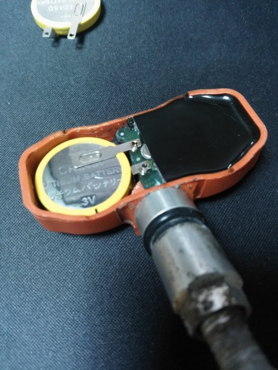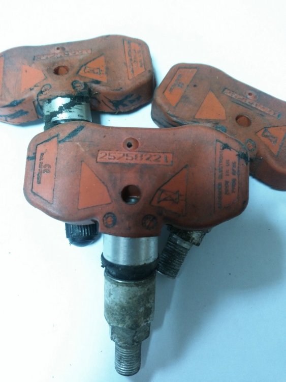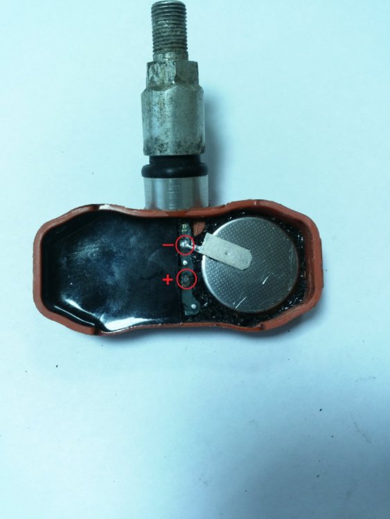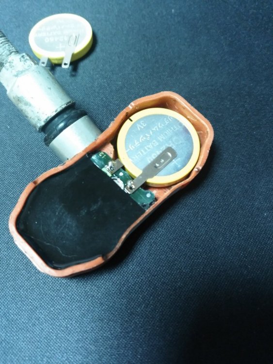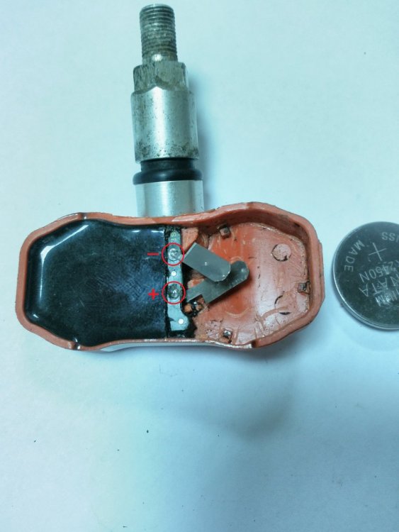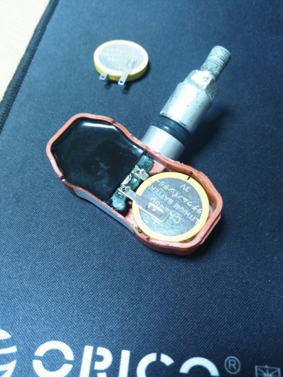 Датчики давления в шинах. Оранжевые. Номер 25758221.Элемент питания CR2450N. Вроде как такой тип ставили только в 2008 (но могу ошибаться), на систему мониторинга UH9. В 2009 году на эту же UH9 ставили уже синие с резиновым "соском" 22853740 (вот https://ru.aliexpress.com/item/32956702482.html?spm=a2g0s.9042311.0.0.274233edrr0zFS) . Заказал для пробы, попробовал обучить прибором с Али EL50448 (вот https://ru.aliexpress.com/item/32798856533.html?spm=a2g0s.9042311.0.0.274233edS8m3a5)., не получилось((.. Прибор проверил перед этим на своих родных датчиках, обучились на отлично. Но батарейки в родных потихоньку умирают, и зимой регулярно "терялись", Так как ценник (именно на оранжевые) "конский", то и было принято решение поменять батарейки. Оттираем датчики. Аккуратно удаляем компаунд (я не стал над платой, что бы не повредить дорожки). От элемента питания отсоединяем контакты (желательно аккуратно, что бы не повредить места пайки на плате). Отпаиваем контакты, они нам больше не нужны. Заказываем новые элементы вот такие: https://ru.aliexpress.com/item/33004426488.html?spm=a2g0s.9042311.0.0.700133ed3PKSJH так как не нужно будет припаивать проводки/контакты и "лепить горбатого"))), потому что нагрев элемента очень ему вредит. Припаять нужно как на фото ниже, ни чего сложного. Я облудил пятно контакта с платой, а капля с боку/сверху "контролька")). Заполняем сверху каучуковым клеем/герметиком BODY 920 (он не воняет уксусом и достаточно твёрдый при высыхании), или тем чем посчитаете нужным. Обучил прибором EL50448 с первого раза. Теперь посмотрим сколько прослужит элемент питания. Ну и фот процесса...
