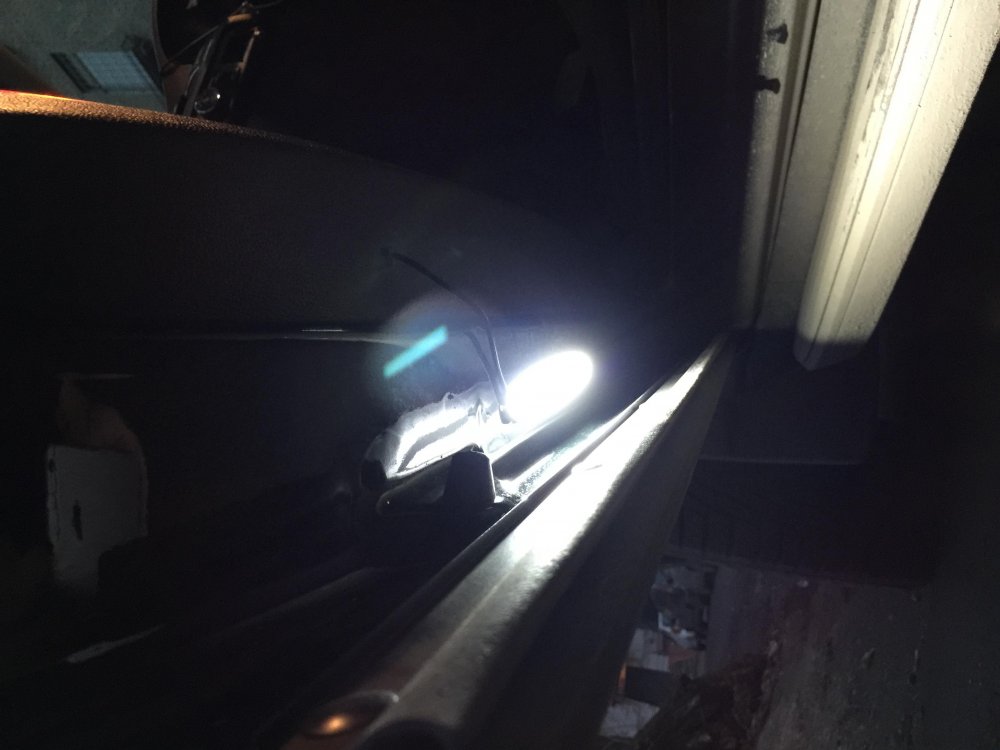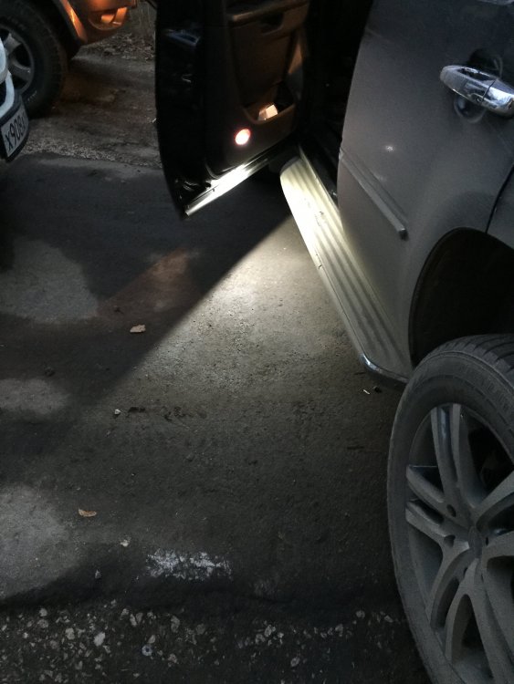 3. купил на али за 200 руб. крепится на 2-х сторонний скотч "3м" нижняя часть двери. Питается от штатной лампочки в двери. работы 10 мин.