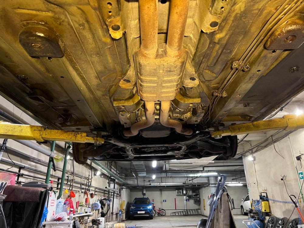 Год назад, ремонтируя АКПП, заметил небольшие и не критичные места коррозии по низу кузова. В основном, сварочные швы и точки от контактной сварки (обычное дело). И учитывая возраст авто (13 лет на сегодня) и хранение с момента покупки в теплом подземном паркинге (а это для кузова огромный минус! вот многие удивятся...) - то все в пределах разумного. Но все же решил сделать полный антикор. И сделал весной. Работы проводил сам, по технологии вот этого толкового мужика: https://www.drive2.ru/l/4897057/ Небольшой фотоотчет: было-стало