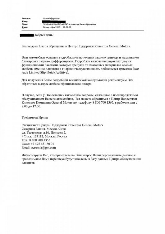 Центр Поддержки Клиентов General Motors Северная Башня. Москва-Сити ул. Тестовская д. 10, Подъезд 2, 9 Этаж, 123112, Москва, Россия Тел.: 8 800 700 1365 Факс: +7 495 651 80 01 Email: ccrussia@gm.com