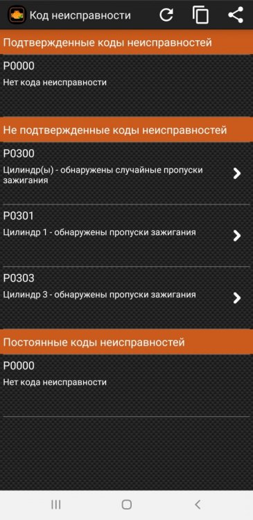 В общем, несколько дней мотор работал как положено. Затем снова затроил. Начал читать сканером каждую поездку. Пропуски по первому цилиндру. Цифры всегда +- одинаковые. Скрин прилагаю. Делаю вывод, что скорее всего, это форсунка. По нестабильности выхлопа, расходу, динамике похоже на нее. новые катушки и свечи ничего не дали. Куплю 1 форсунку и свечи. Посмотрим на результат)) -