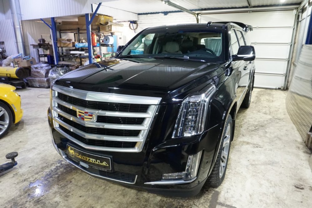 Оклейка Cadillac Escalade 4 антигравийной пленкой SUNTEK Эксплуатация автомобиля может проходить в самых разных обстоятельствах. Иногда условия вождения бывают экстремальными, что провоцирует преждевременный износ транспортного средства. Антигравийная пленка, установленная на передние фрагменты машины, поможет сохранить эксплуатационные качества авто на длительный срок. Для защиты этого автомобиля мы использовали защитную полиуретановую пленку SUNTEK. На сегодняшний день это самая эффективная защита лакокрасочного покрытия для автомобиля. Как правило в комплект оклейки входят те детали, которые наиболее подвержены повреждениям. 1. Капот. 2. Передние крылья. 3. Передний бампер. 4. Фары и противотуманные фары. 5. Передние стойки. 6. Передняя часть крыши. 7. Боковые зеркала. Антигравийная защита в Москве может быть доверена нашим профессионалам. Сервисные услуги компании Cadzilla распространяется на любую деталь автомобиля. Если Вы по-настоящему дорожите своим транспортным средством и не сомневаетесь в том, что защитить машину проще, чем впоследствии ремонтировать ее, то для Вас у нас есть услуга — полная оклейка кузова. В рамках данной услуги специалисты компании гарантируют полную защиту ЛКП Вашего автомобиля. Рассчитать стоимость и заказать услугу Вы можете по телефонам: +7(977)314-00-02 +7(968)449-05-97 С уважением, Епишев Иван. Руководитель проектов тюнинг ателье Cadzilla +7(977)314-00-02 +7(968)449-05-97 127282, г. Москва, ул. Полярная, д.39, стр.1, офис 327 Наш основной сайт: www.cadzilla.ru/o-nas Наш instagram: www.instagram.com/cadzilla.me/ -