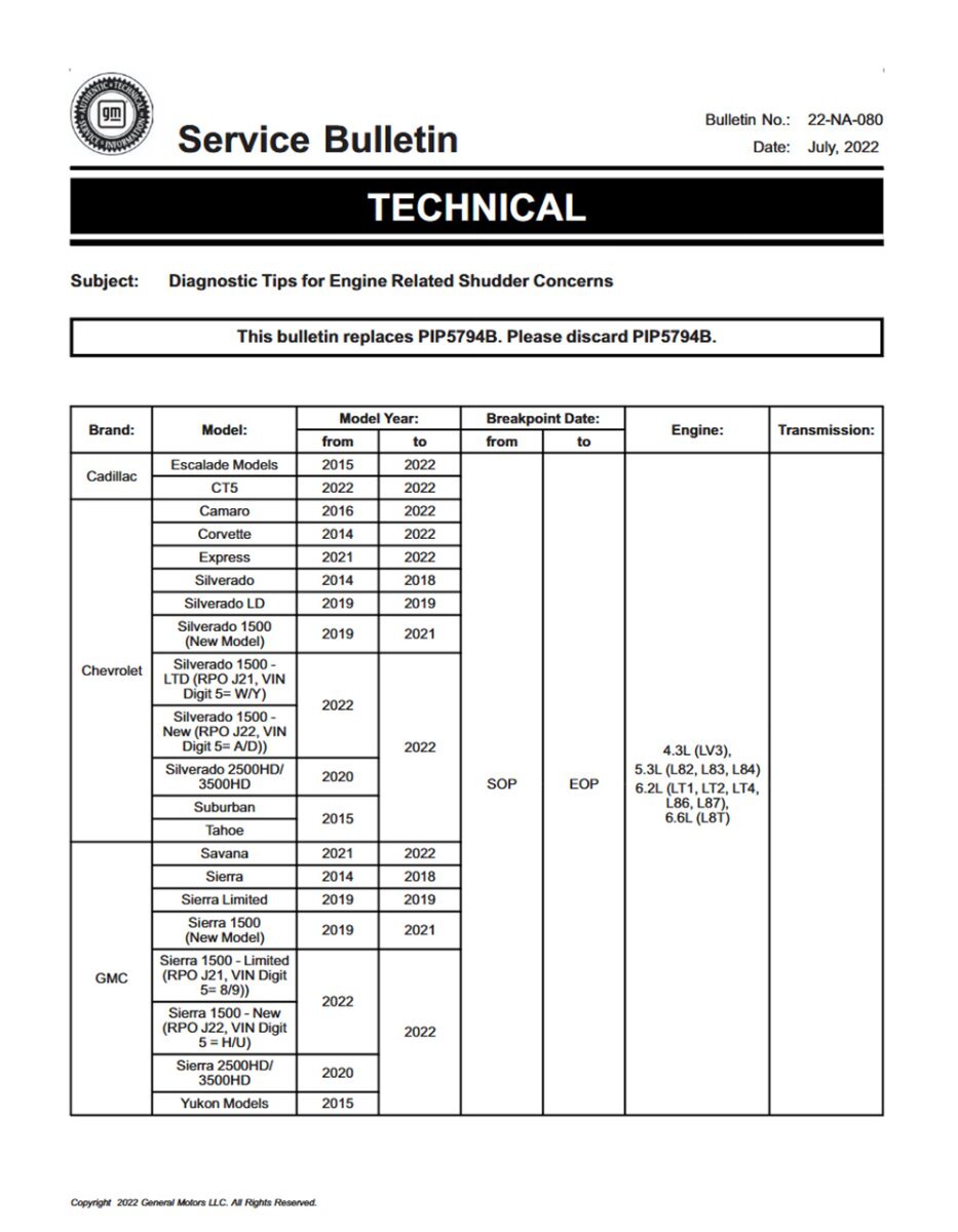 Двигатели L87, применяемые на автомобилях Escalade и Tahoe 5 поколения (T1XX) с завода имеют значительные технические недоработки. Ошибки в работе системе смазки, проводят к потере давления, ускоренному износу, и поломкам, часто приводящим к полному разрушению двигателя.